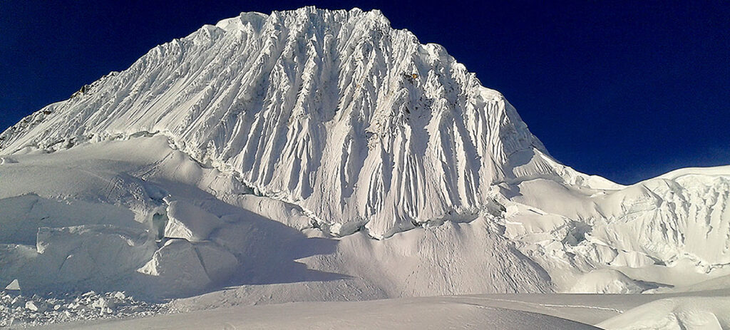 Esta expedición nos llevará a conquistar la cima de la por muchos considerada, la montaña más bella del planeta: el Alpamayo. A pesar de ser considerablemente más bajo que los montes vecinos, se distingue por su inusual simetría y exuberante aspecto. Su ruta normal es bastante técnica y con cierta dificultad, con una pendiente final de 60 grados, conforma una pirámide de hielo casi perfecta. Escalar esta montaña requiere sin duda experiencia, motivación y voluntad. Como recompensa, podremos contemplar las imponentes montañas como el Huandoy norte, el Artesonraju y el Huascarán norte, un espectáculo impresionante que no nos dejará indiferentes.