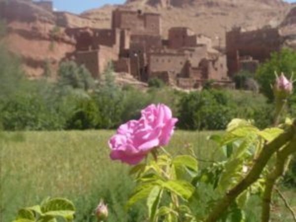 En el corazón del Atlas marroquí, desde hace al menos seis siglos, a 1.500 m de altitud crecen los rosales escondidos contra las pendientes del M’Goun y el Valle del Dades. A mediados de mayo, todo el valle se llena del perfume de las rosas que florecen. Esta hilera de cañones y ríos donde a menudo hay que cruzar con los pies descalzos, es la única puerta de acceso a los jardines verdes y frondosos donde crece la rosa de Damasco que resiste al frío y a la sequía.