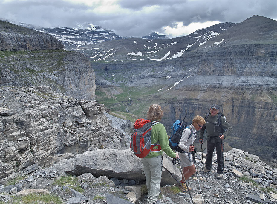 PROGRAMA: Saldremos del Valle de Pineta, subimos al Collado de Añisclo (2.453 m) y al Refugio de Goriz (2.200 m). Al día siguiente franquearemos la Brecha De Rolando (2.807 m) y, ya en terreno francés, descenderemos hasta el Collado de Tentes para ir a Gavarnie. La 3º jornada discurre toda en Francia, descenderemos por pastos y bosques al Circo de Gavarnie (1.400 m) para finalizar en el Refugio de Espuguettes (2.027 m). El último día de nuestro recorrido regresamos a España, pasaremos la Brecha de Tucarroya a (2.667 m) y El Balcón de Pineta desde donde descenderemos hasta Pineta.